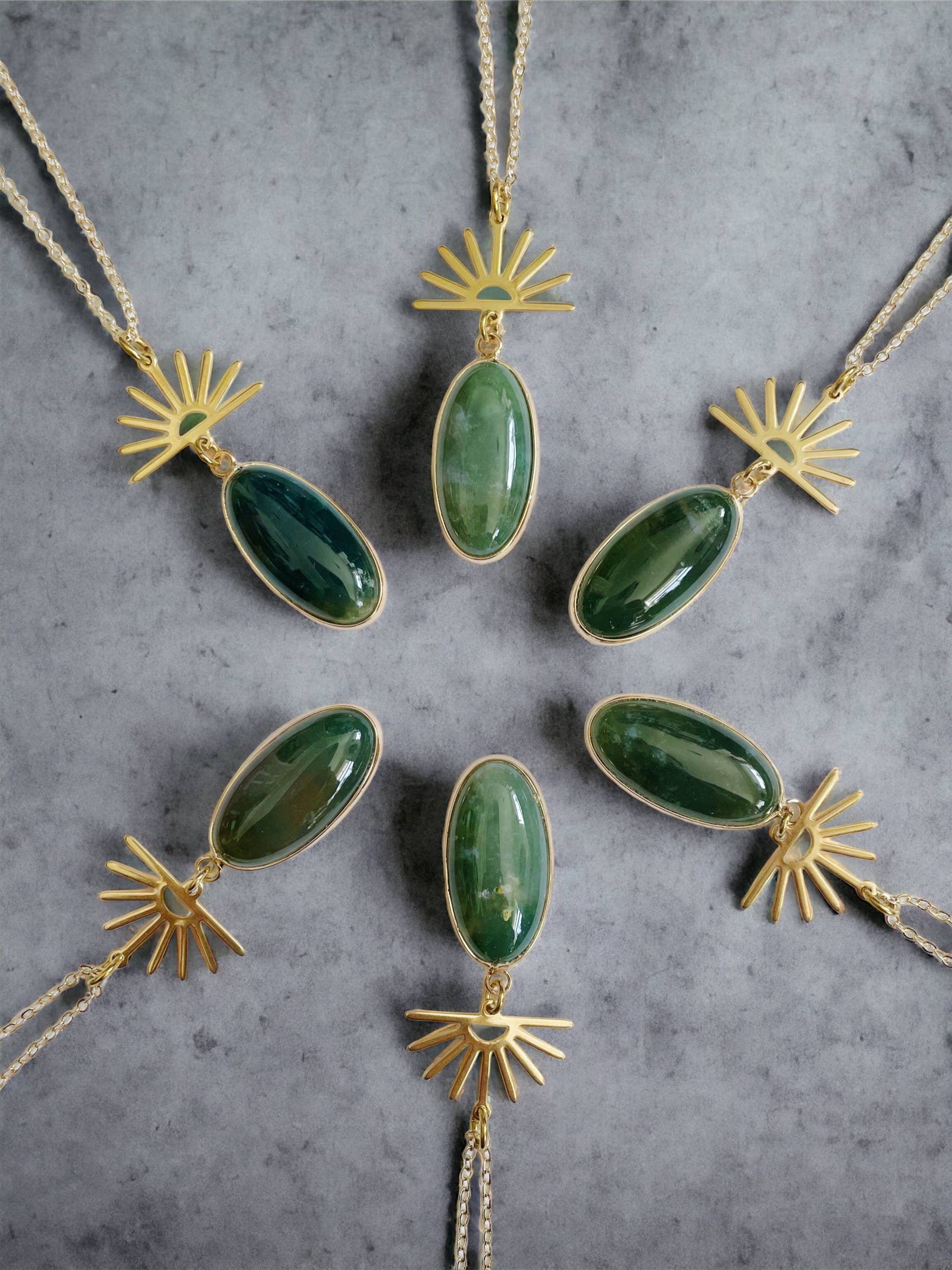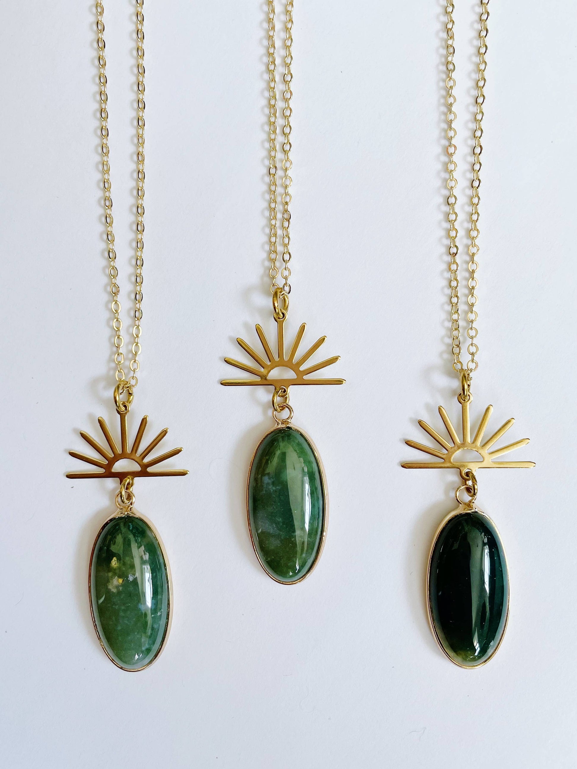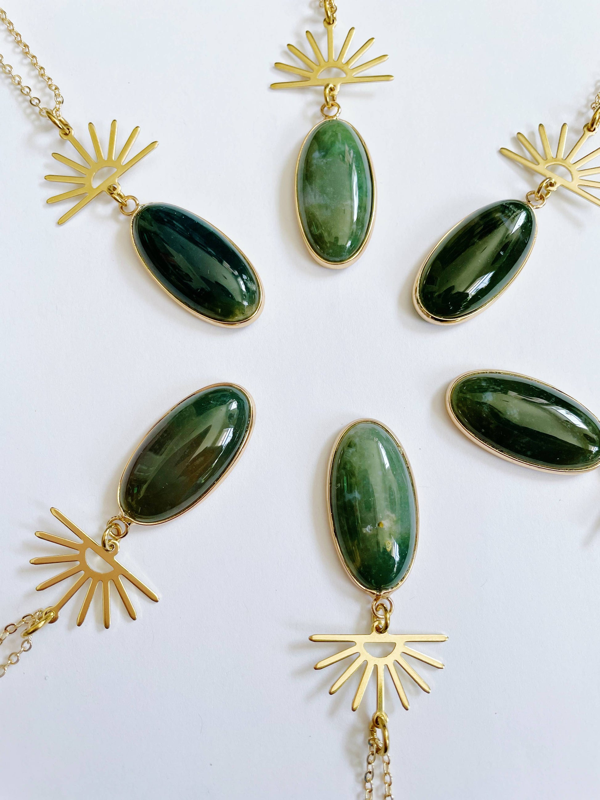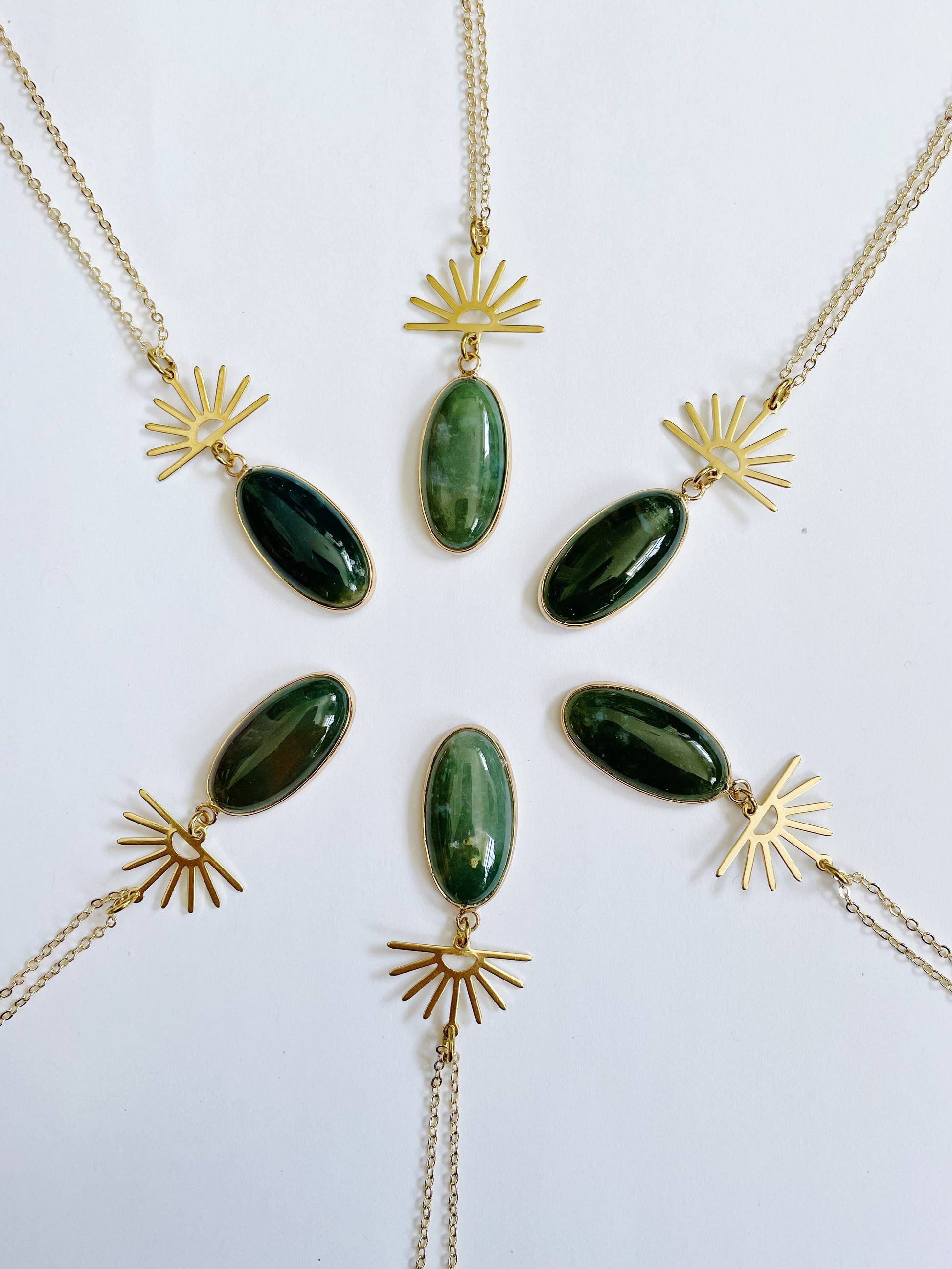 GeoMetricGem - Harlow Necklace ~ Gold Plated Chain & Green Indian Agate