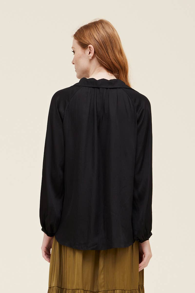 Grade & Gather - 41458PP - COLLARED SATIN BLOUSE: MILK / SMALL