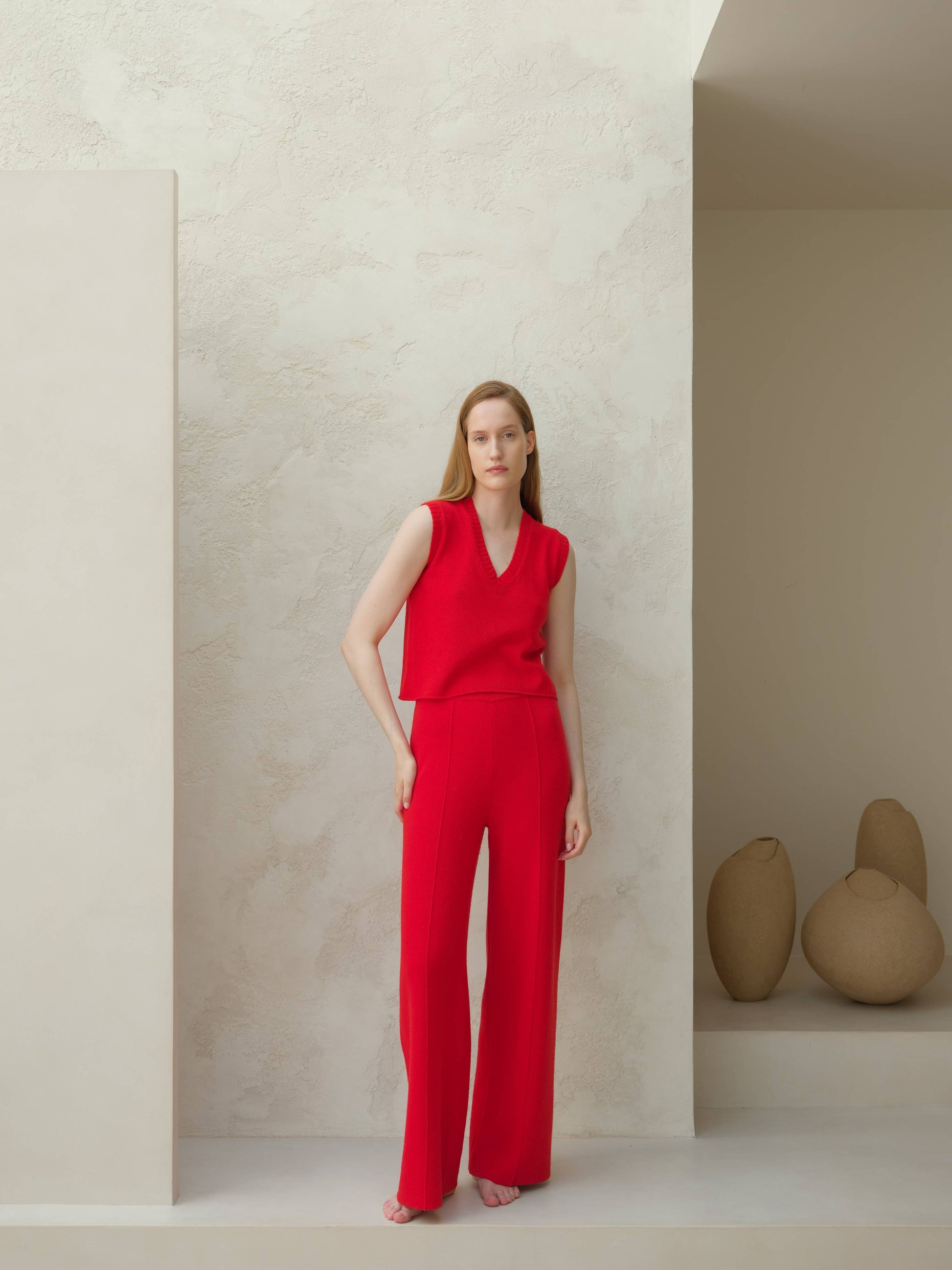 Our wide-leg pants with elastic waistband are designed to enhance every woman's body. Synonymous with the timeless charm of Italian style, it has evolved into the light and soft texture of our quality cashmere blend.
