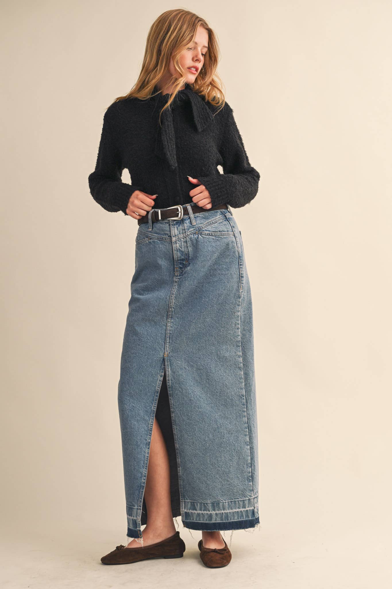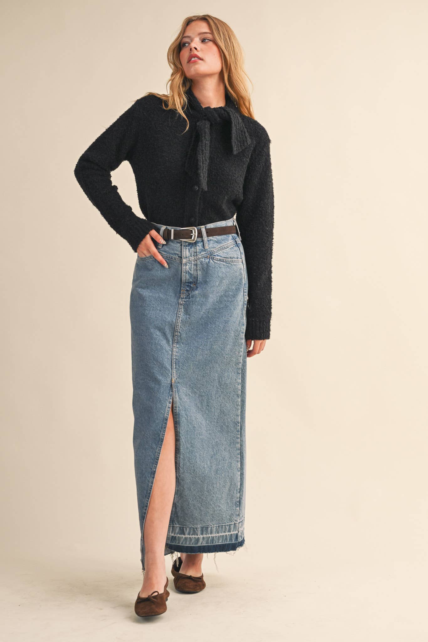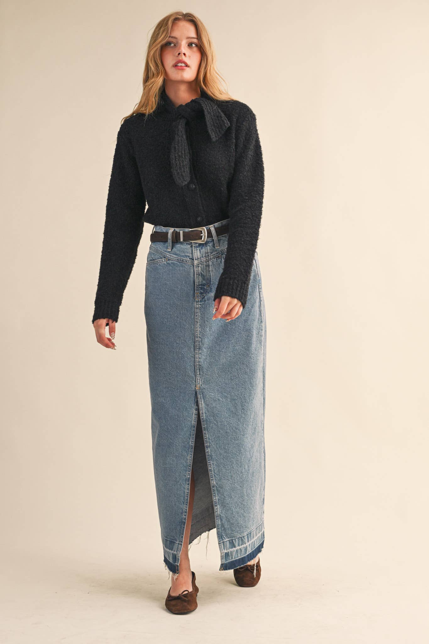 Looking cute and staying comfortable throughout the day is exactly what this tying neck sweater cardigan was made for! Soft sweater knit shapes a tying neckline, long sleeves with ribbed cuffs, and a relaxed button down bodice. Pair with any of your favorite bottoms for a look you will love!
