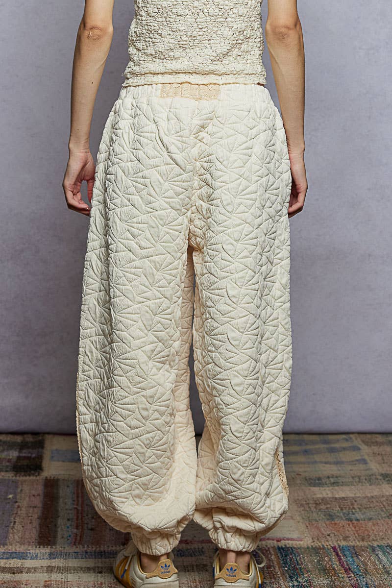 Pol Clothing - Vintage washing solid trim quilted knit jogger pants: CHARCOAL / S